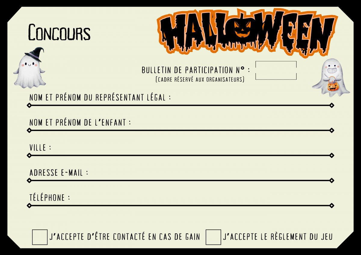 Le participant devra être déguisé, il sera pris en photo et devra produire un cri effrayant. L’enfant doit être accompagné d’un adulte.